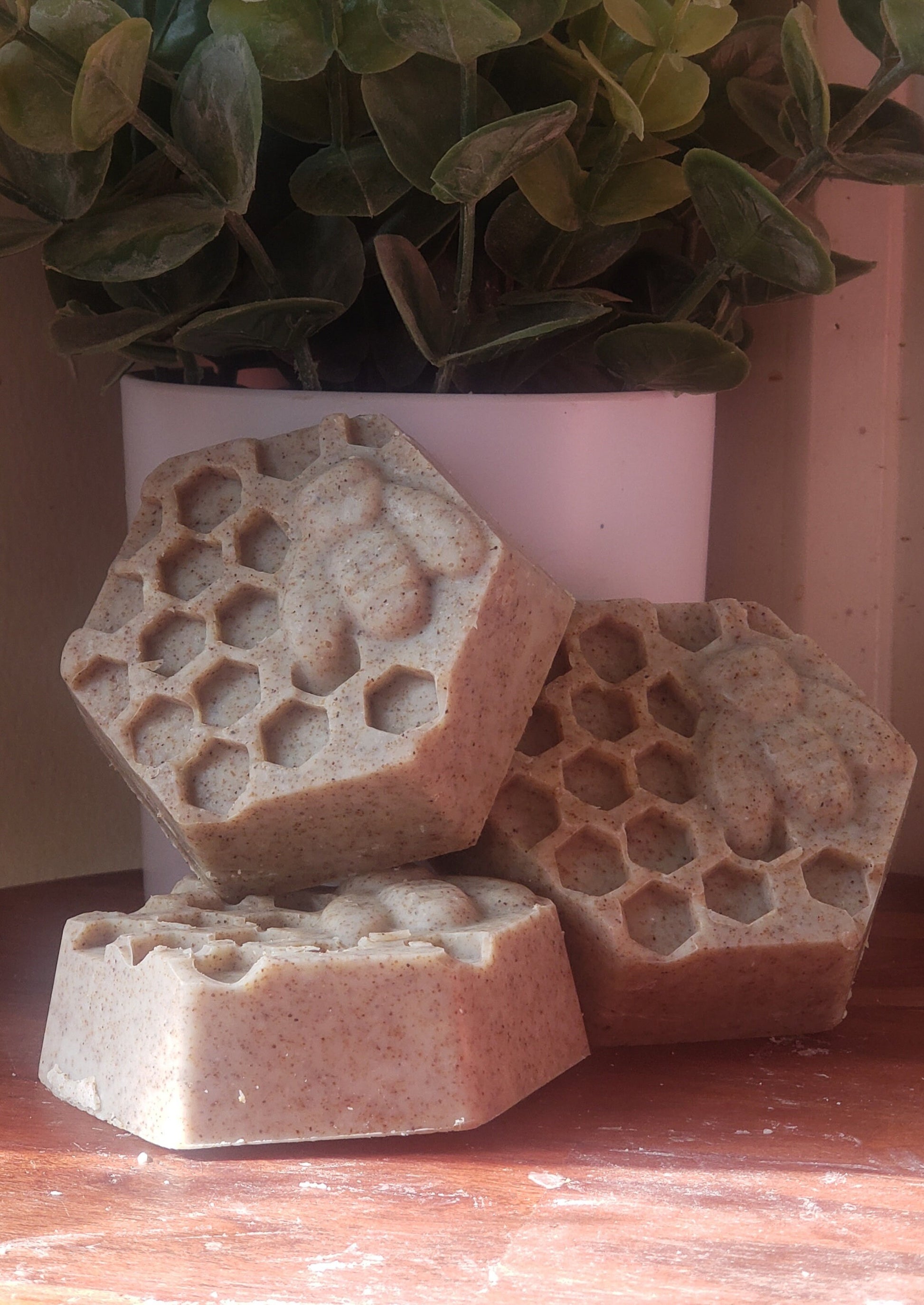 This scrubby bar provides gentle, yet effective exfoliation to cut away dirt and grime from your hands. It can also smooth down rough feet, knees, elbows, or anywhere else your body needs some special attention. Of course it's full of goat's milk and skin loving oils, but the addition of pure orange essential oil and pumice and ground walnut shells makes this bar truly amazing. Available in our popular honey comb design and round bars.